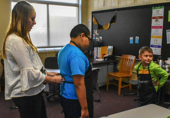 “The students love being able to go around to teachers,” said Pnazek, “They really loved the aprons on day one; they said it made them feel ‘working,’ which I love.”